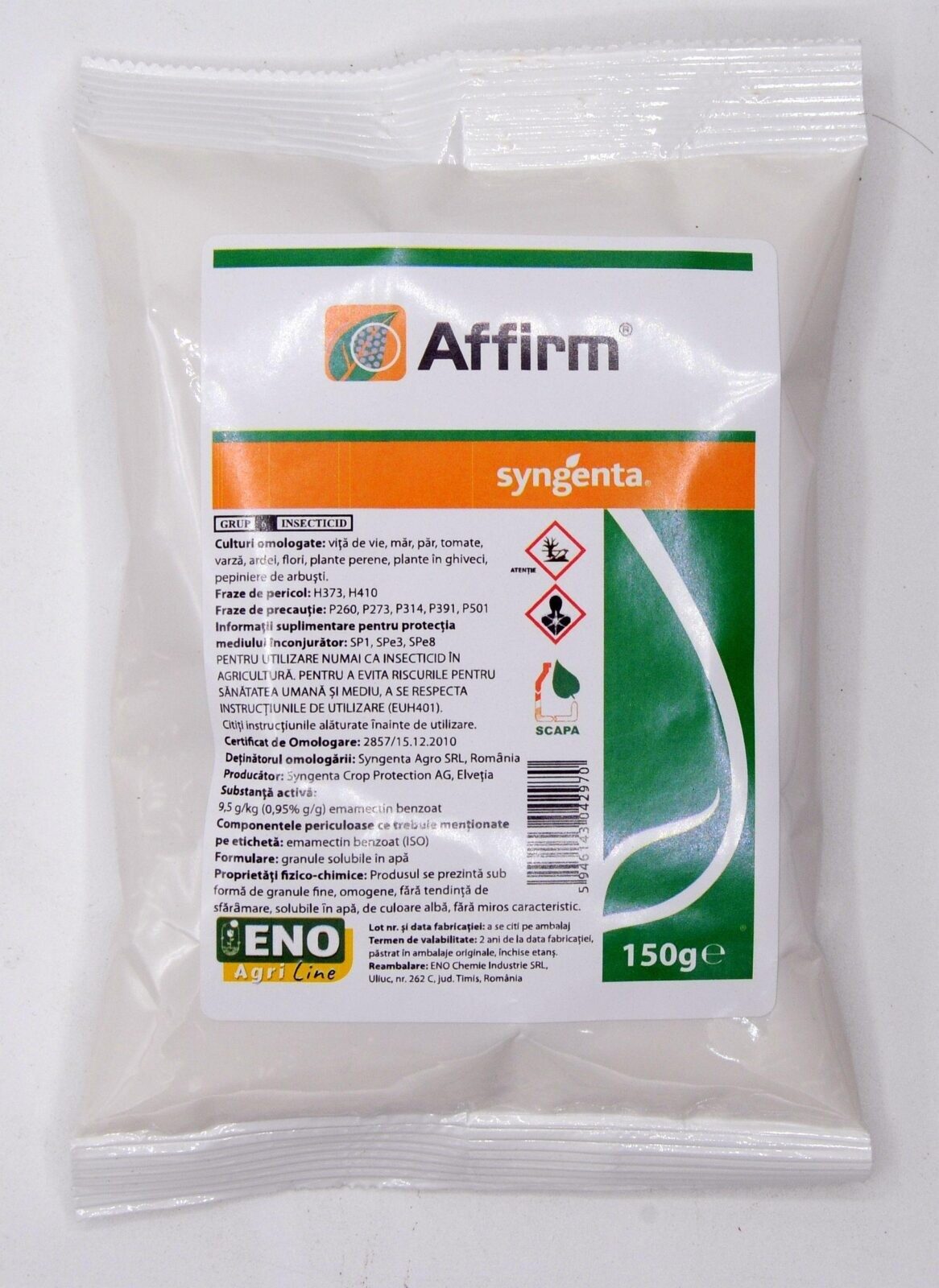 AFFIRM® acţionează prin blocarea transmiterii semnalelor nervoase ale insectei, care traversează canalele de clor de la nivelul mușchilor. Insecta ȋși ȋncetează imediat hrănirea, paralizează ireversibil și moare ȋntr-un timp relativ scurt. AFFIRM® acţionează specific asupra lepidopterelor prin contact și ingestie. Produsul are mișcare sistemică locală (translaminară sau penetrantă) la nivelul organelor vegetale tratate, unde intră ȋn interior și formează un rezervor activ de produs care protejează foarte eficient planta ȋmpotriva lepidopterelor.