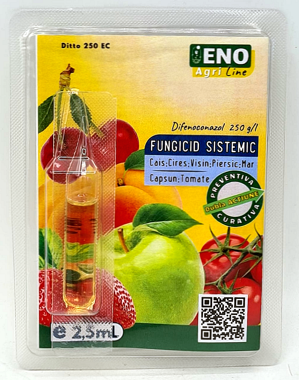 Mod de acțiune: Produsul este un fungicid sistemic din grupa triazolilor, cu efect preventiv și curativ asupra ciupercilor patogene. După aplicare este preluat rapid de plantă prin frunze și transportat acropetal prin vasele lemnoase către toate organele verzi. Difenoconazol interferează în procesul de biosinteză al ergosterolului şi întrerupe funcţiile membranei celulare ale ciupercii patogene. Aderă foarte bine pe frunze şi asigură o perioadă de protecţie de 10-14 zile.