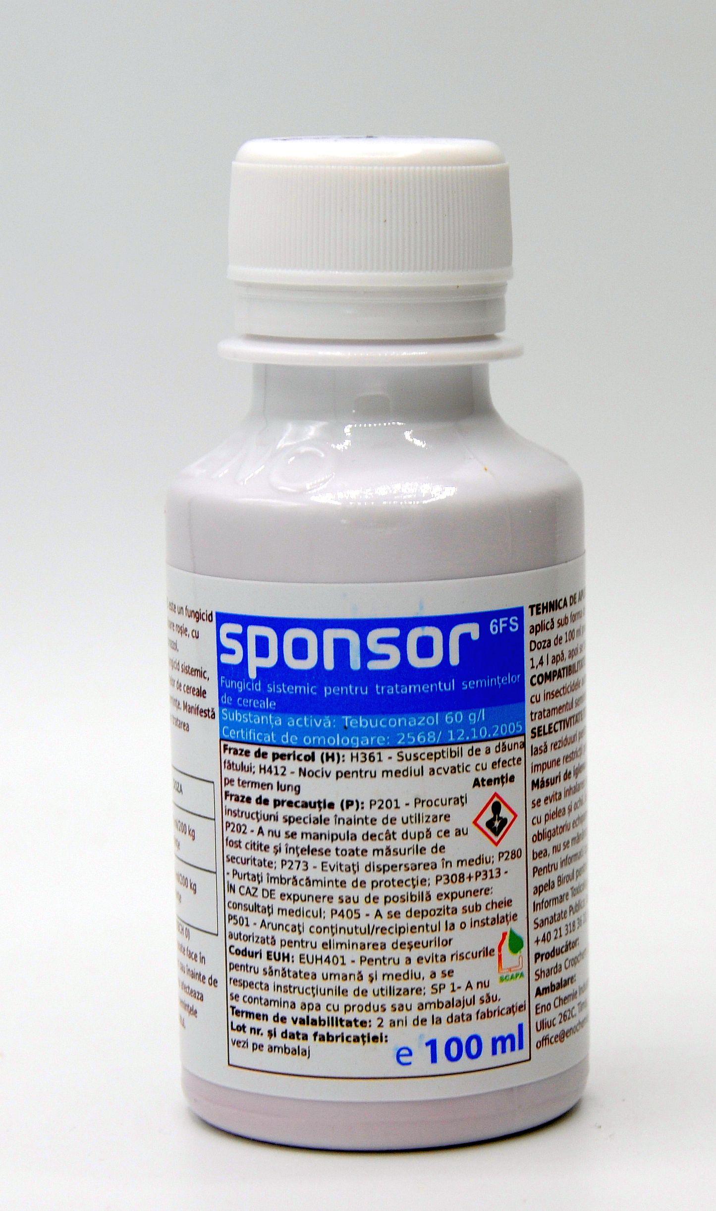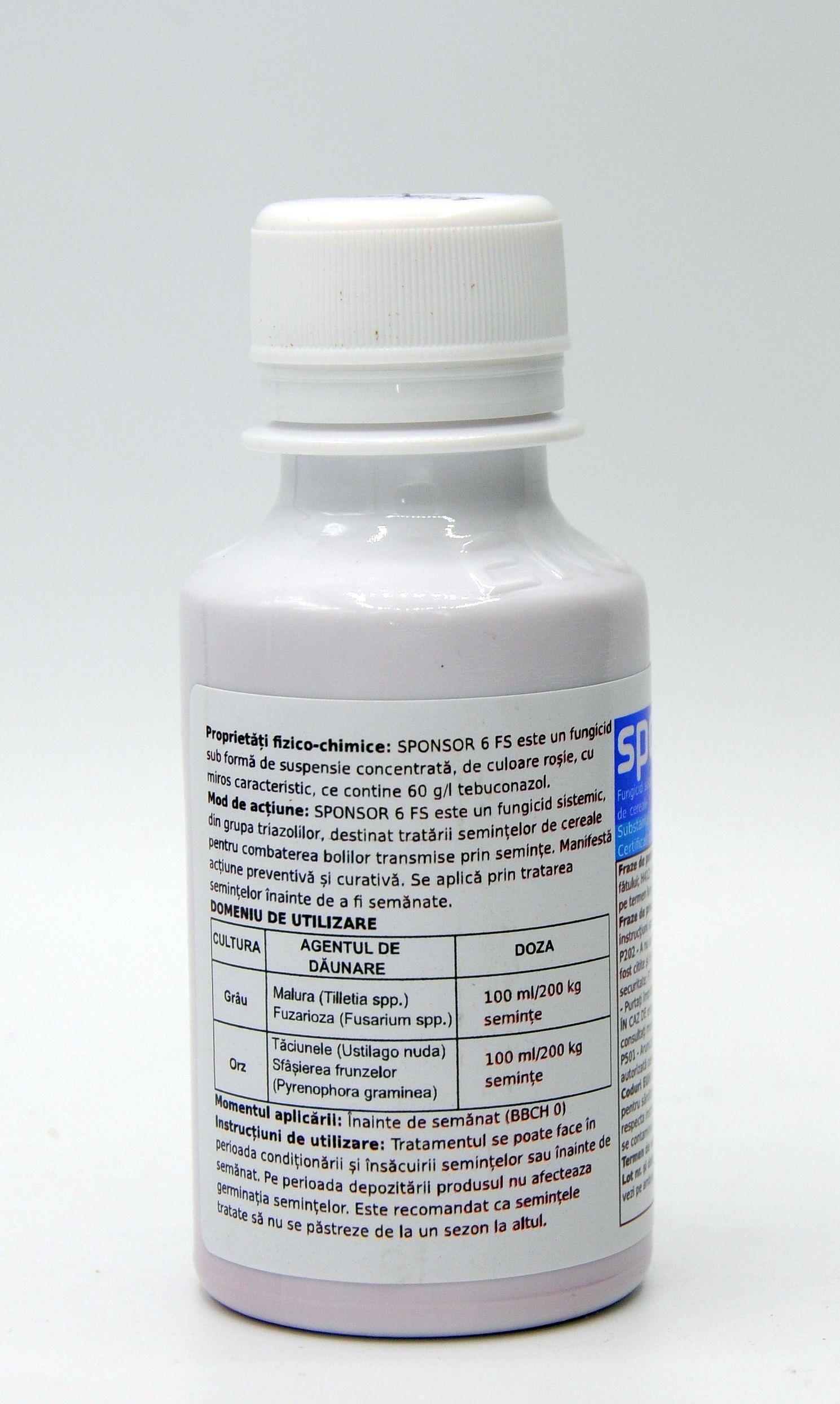 Sponsor 6 FS este un produs cu eficacitate ridicată și efect atât preventiv cât și curativ. Se prezintă sub formă lichidă (suspensie concentrată), de culoare roșie. Aderă foarte bine pe suprafața semințelor tratate.