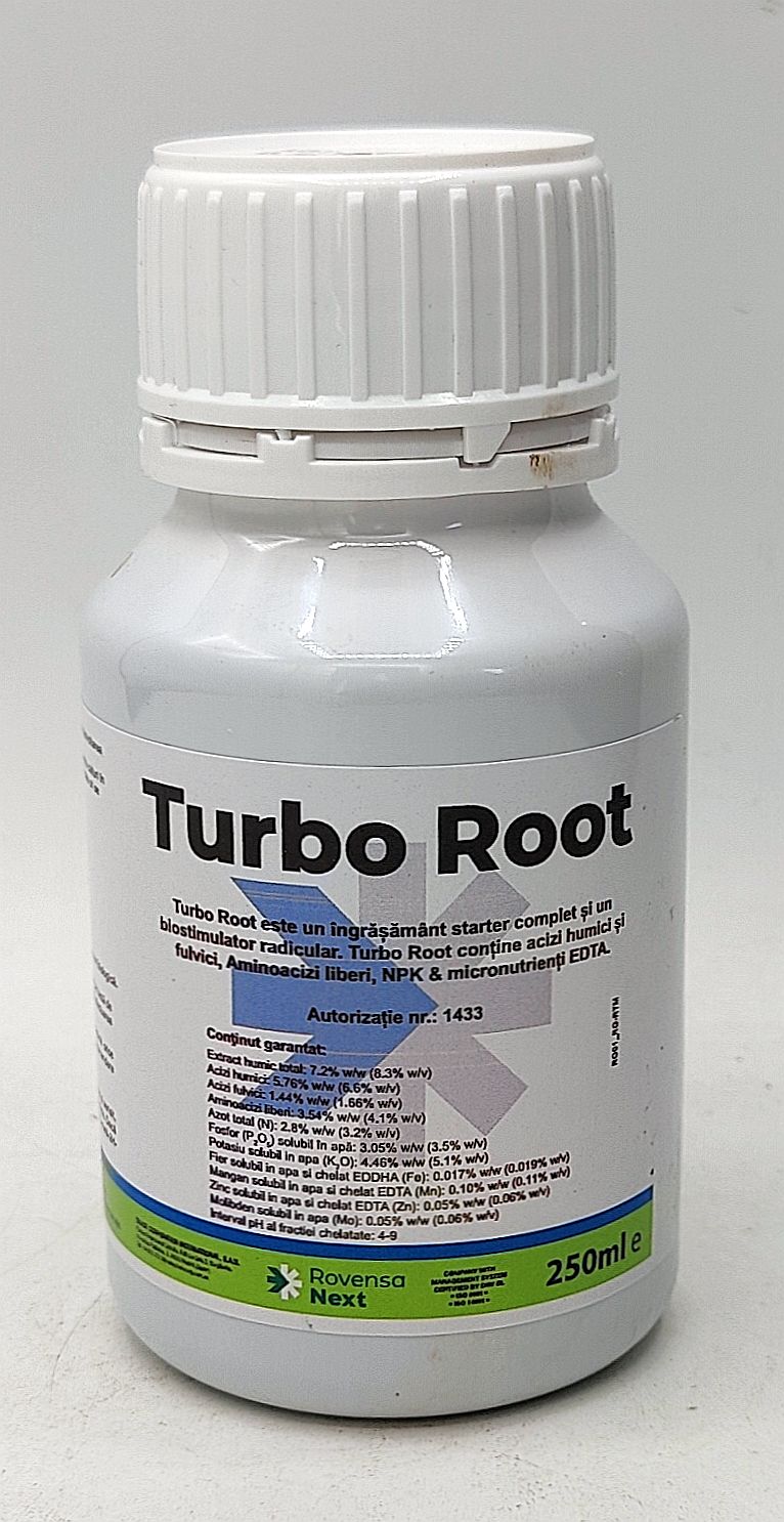 Turbo Root este un îngrășământ starter complet și un biostimulator radicular. Turbo Root conține acizi humici și fulvici pentru a stimula dezvoltarea rădăcinilor si creșterea plantelor. Aminoacizii liberi stimulează creșterea rădăcinilor, reducând în același timp stresul plantelor.